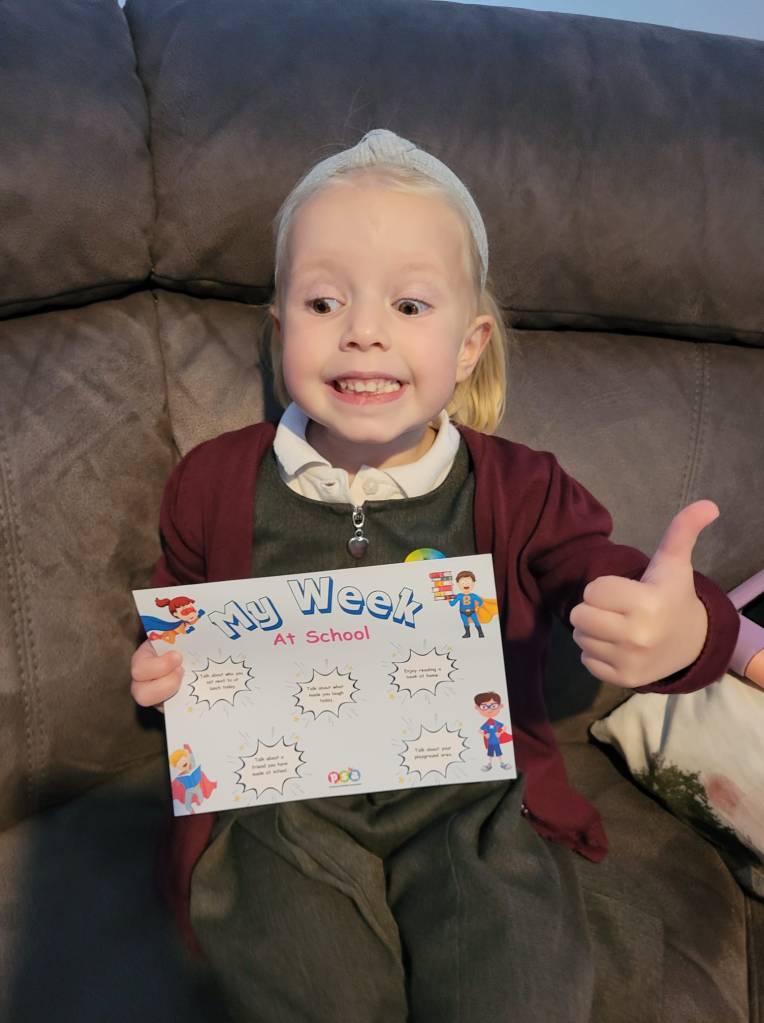 The idea was to provide some conversation starters to encourage the children to remember their school day and enjoy talking about it at home so they could tick off their task.