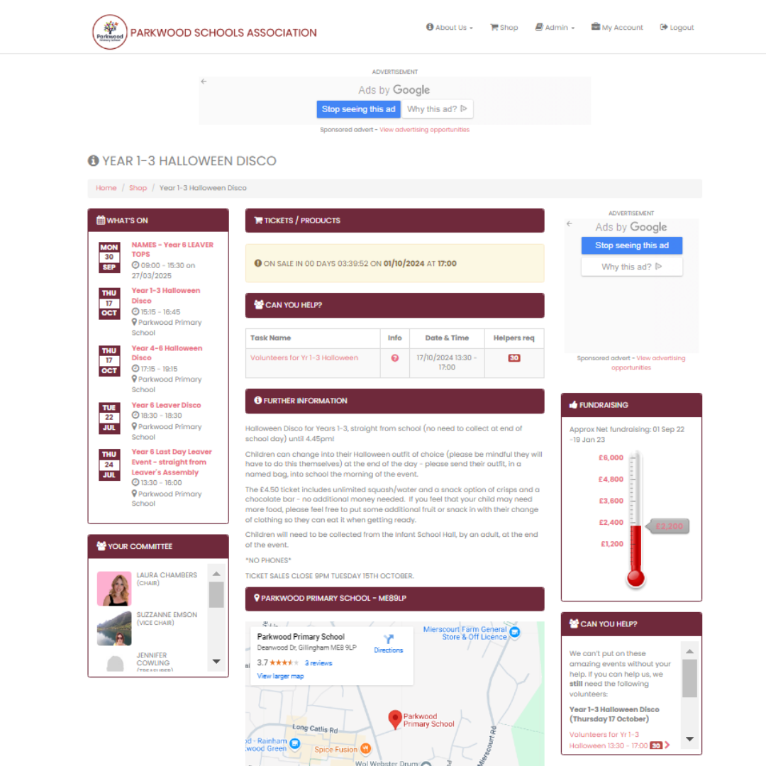 To allow us to track ticket sales and process card payments we use a system called PTA Events. (As seen in screen shot image).